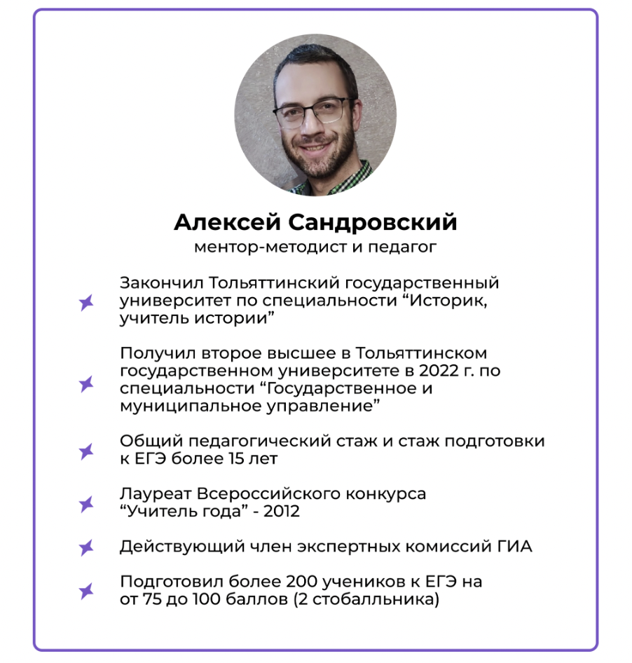 Обладая 15-летним опытом руководства приемной комиссией государственного университета, Дмитрий знает все "секреты" успешного зачисления. Под его руководством уже 100 000 студентов прошли платные и бесплатные курсы, марафоны и интенсивы за последние 5 лет и поступили на бюджет, сэкономив более 2,1 млрд рублей на платном обучении.