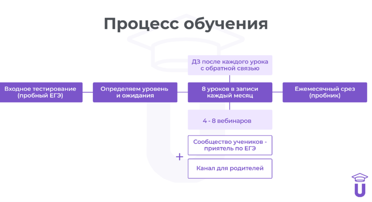 Наши методисты, педагоги и кураторы помогут им в короткие сроки выстроить эффективный план подготовки и следовать ему, отслеживать прогресс и давать персональные рекомендации.